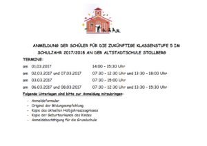 Schulanmeldung Kl. 5